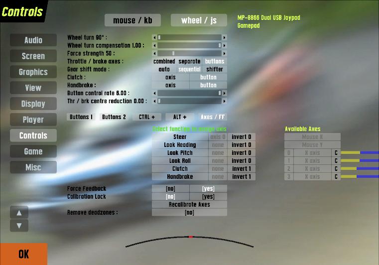 I tried a Gamepad I bought from GAME but that seems way to sensitive for me. I'll give it another go, but like JasonJ, the stick movement is too quick to drive properly i.e. in a straight line, hence I stuck with the mouse and kb inputs.
