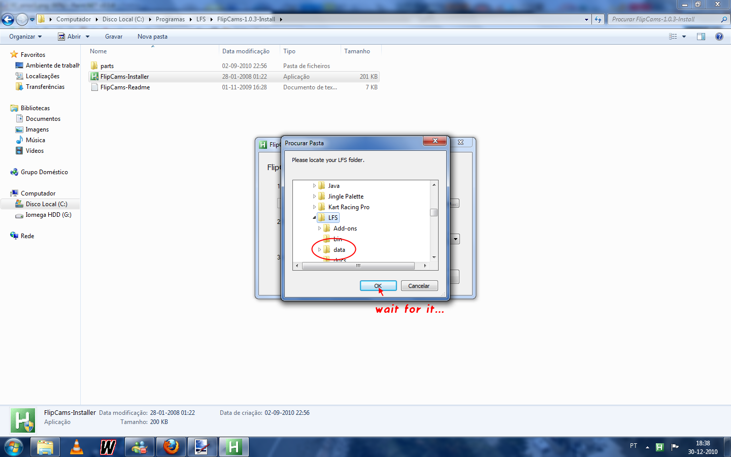 Navigate to your "FlipCam-1.0.2-Install" folder, then open the folder "parts", copy FlipCams.exe from there, and paste it into your LFS folder. Then Launch LFS and see if it works.