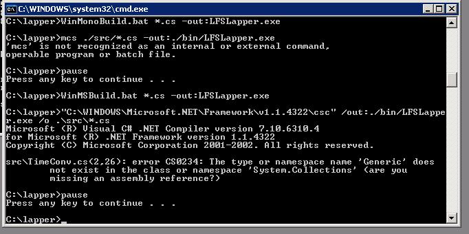 You can try changing compiler to v2. Edit WinMSBuild.bat with notepad and replace v1.1.4322 with v2.0.50727.