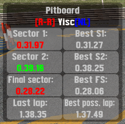 +----------------------------+ |Changes from v5.706 to 5.707| +----------------------------+ 1. Add new var $isBestSectorSplit1 -> 1 if this sector split is best than previous Best, otherwise 0 $isBestSectorSplit2 -> 1 if this sector split is best than previous Best, otherwise 0 $isBestSectorSplit3 -> 1 if this sector split is best than previous Best, otherwise 0 $isBestSectorSplitLast -> 1 if this sector split is best than previous Best, otherwise 0