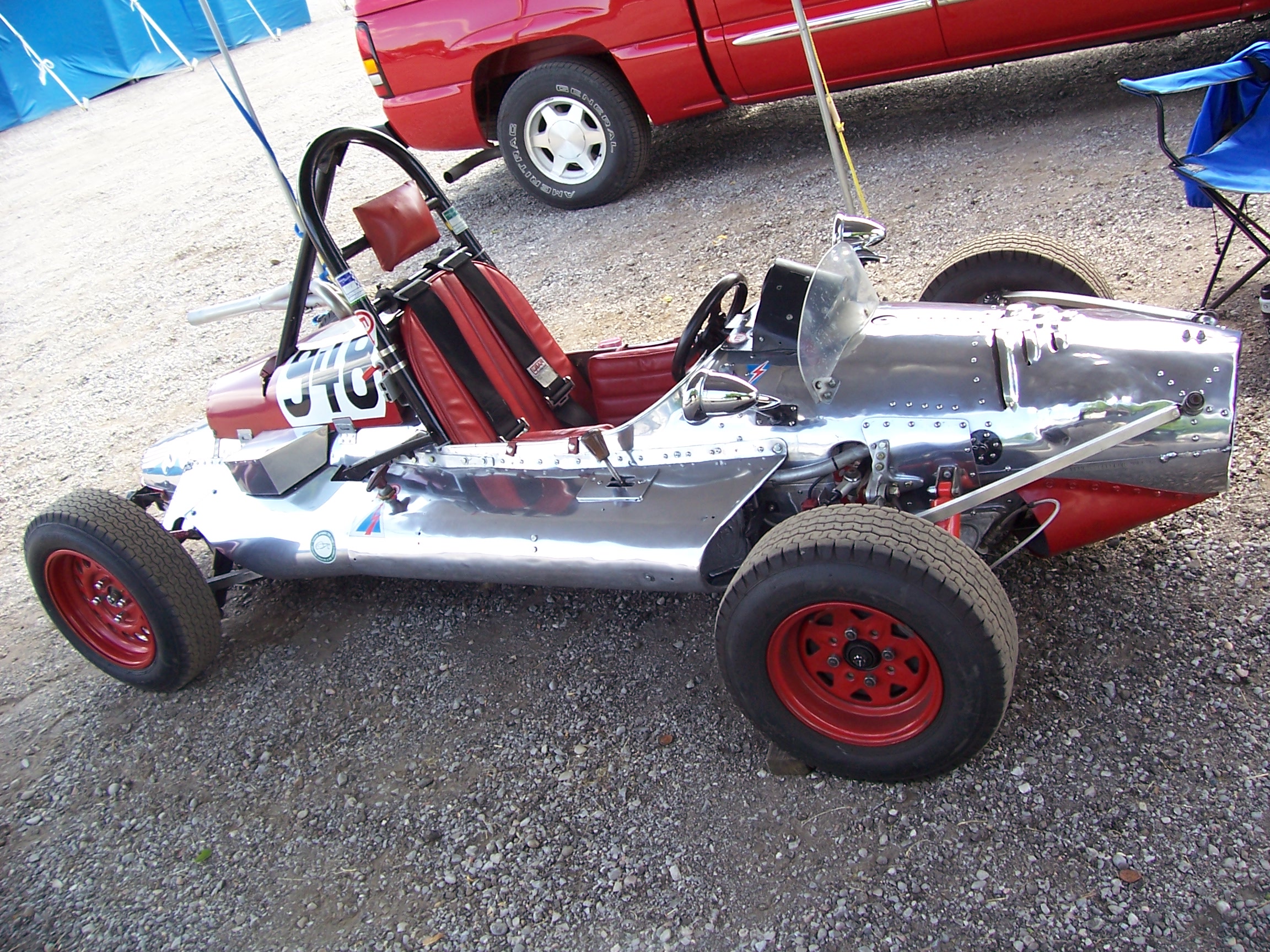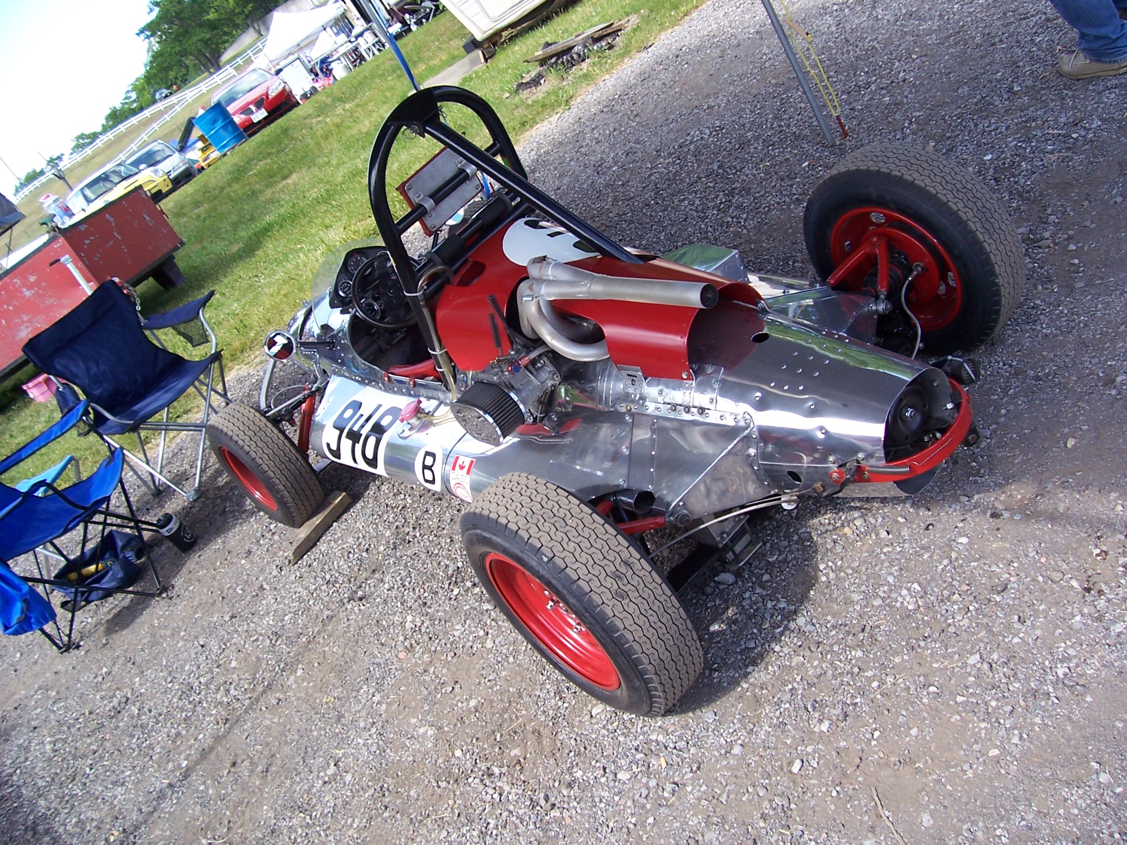 Gotta like that beast huh? The Dreossi Special was built by Ray Dreossi and Cece Simmons near Courtice, Ontario. This was the 2nd car Cece had built and was designed to incorporate some improvements over his 1st. It was built from a 98 imperial gallon under-wing drop tank from a F86 Sabre-jet. Engine is the 948 cc BMC 'A' series from a Sprite bored out to 998 cc. Indeed a fun car to watch barreling around Mosport. My wife was calling it the Hoover all weekend