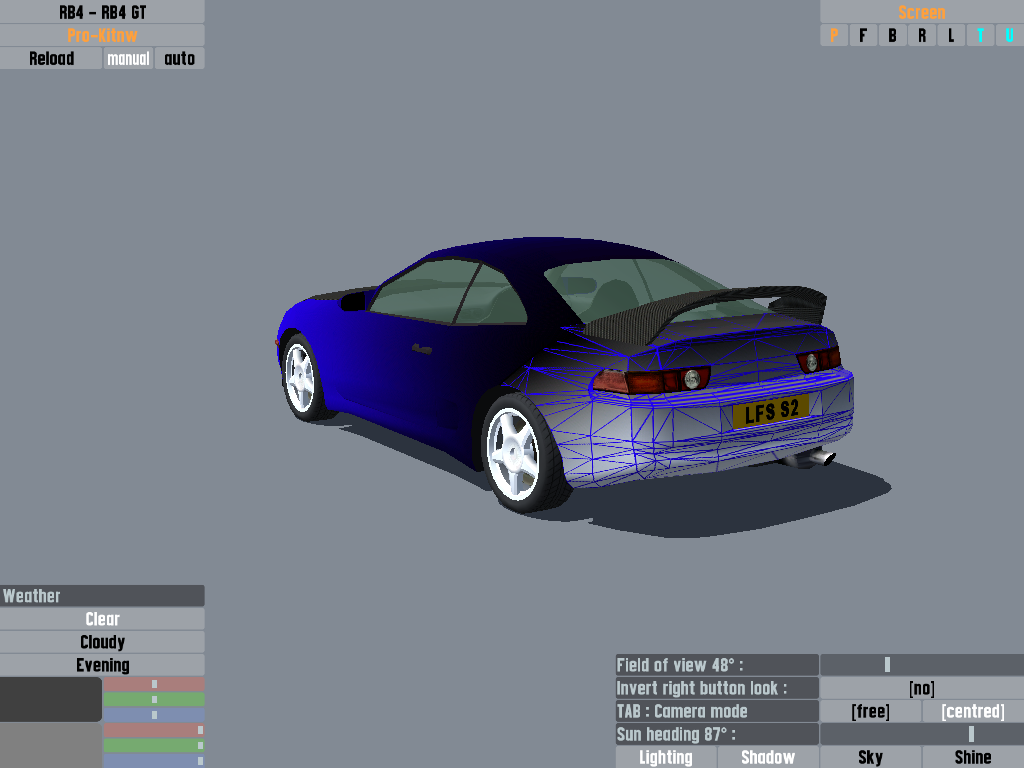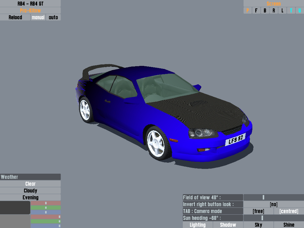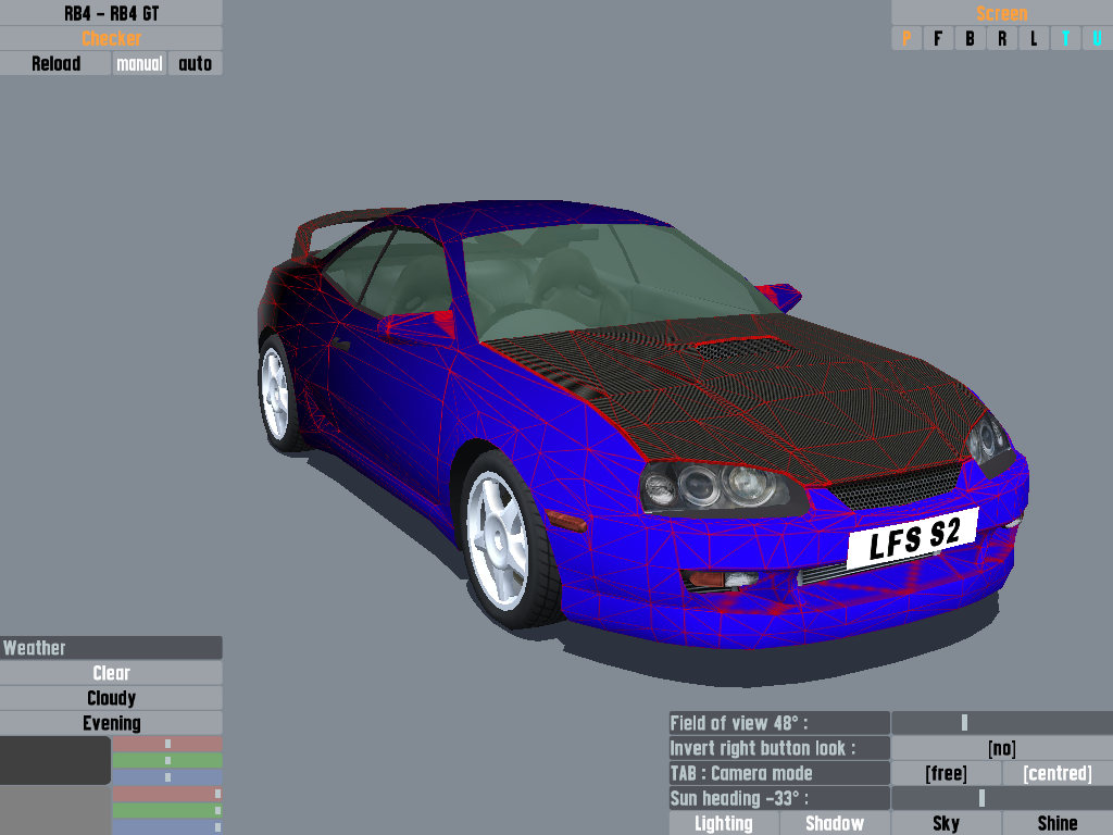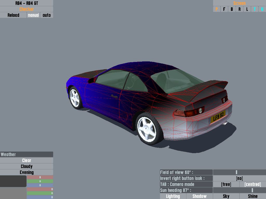 This is my current WIP, t'is a skin for the RB4, no particular theme yet, just finished the gradient paintwork. Hopefully looks ok so far? I was thinking of either leaving the wireframe pattern on at the back (where it goes black to white, but change the wireframe from red to the blue) or putting a checker flag pattern. Thoughts?