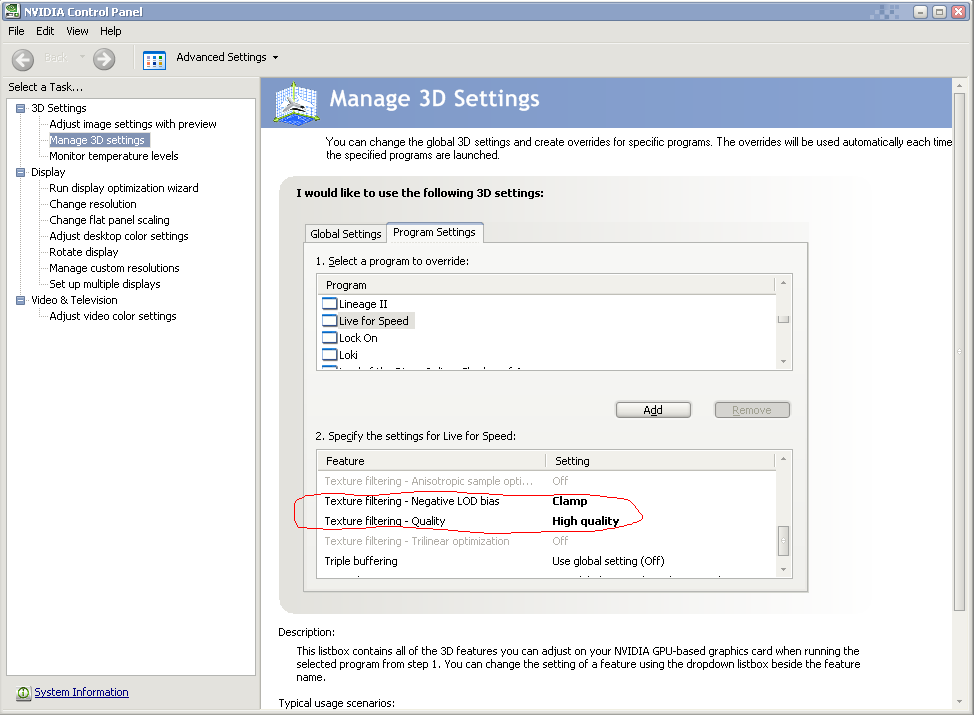 Any idea why the settings don't change when in game? I have tried changing global settings and also program specific.