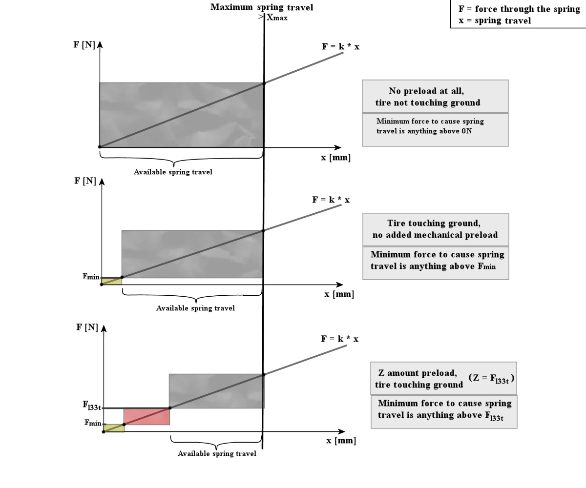 I know, from very basic spring mechanics, that preloading a spring does NOT change the rate of the spring. If it takes 300lb of preload to compress a spring 1 inch (i.e. a 300lb/in spring) it will take another 300lb to compress it a further inch. It also does not, as some people have tried to tell me (and these people have been runnning single seaters for a while, and are winning!) mean that the first 300lb of load on the spring do not compress it.