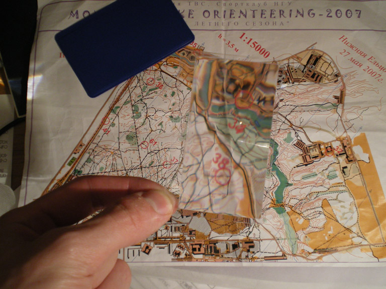 In the second picture, this is a medium-size lens, 260*180mm. In the third, a visit-card lens. Makes crooked picture on high magnifying rate (as in the photo), but still does magnify, and can be a nice souvenir, if you can't find this in a store in your area.