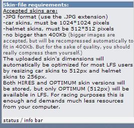 Hi there, this is a small improvement but I thought maybe this part of LFS World could be changed to say about the new high res skin downloads?