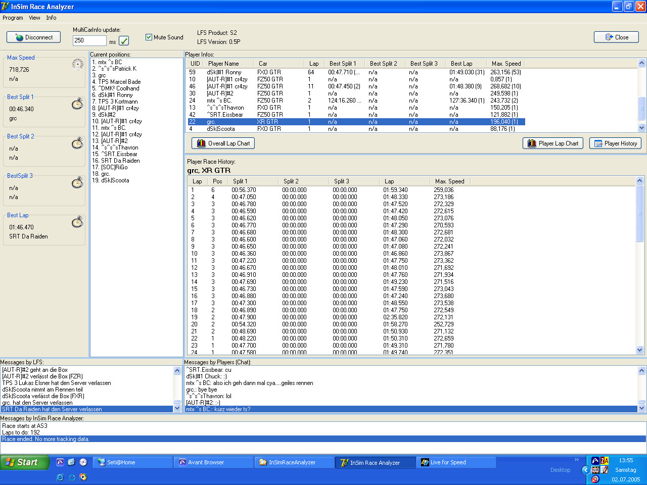 I'm looking for a lap logging tool. It should be connected via insim and write some stuff like lfsw username and lap times to a file or db, so that you can work with this logged data easily.