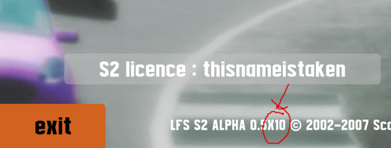 Quote from Boris Lozac :You see the version on the entry screen, it's the black screen with big LFS logo on it, the version is in the lower left corner..