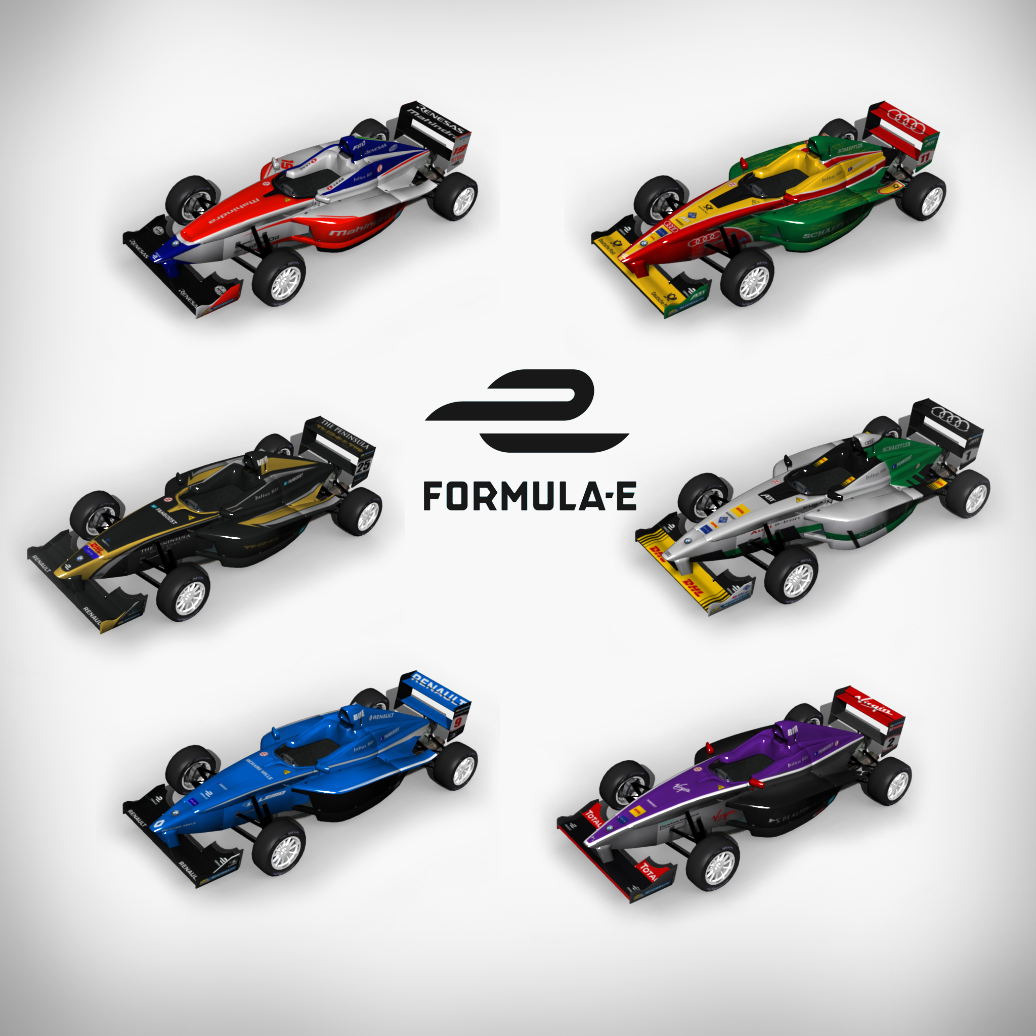 Formula.e #Renault e.dams #8 Nicolas Prost #9 Sébastien Buemi #Mahindra Racing #19 Felix Rosenqvist #23 Nick Heidfeld #Audi Sport ABT Schaeffler [2017] #11 Lucas di Grassi #66 Daniel Abt #Audi Sport ABT Schaeffler [2018] #1 Lucas di Grassi #66 Daniel Abt #Techeetah Formula E Team #18 André Lotterer #25 Jean-Éric Vergne #DS Virgin Racing Formula E Team #2 Sam Bird #36 Alex Lynn Attached images