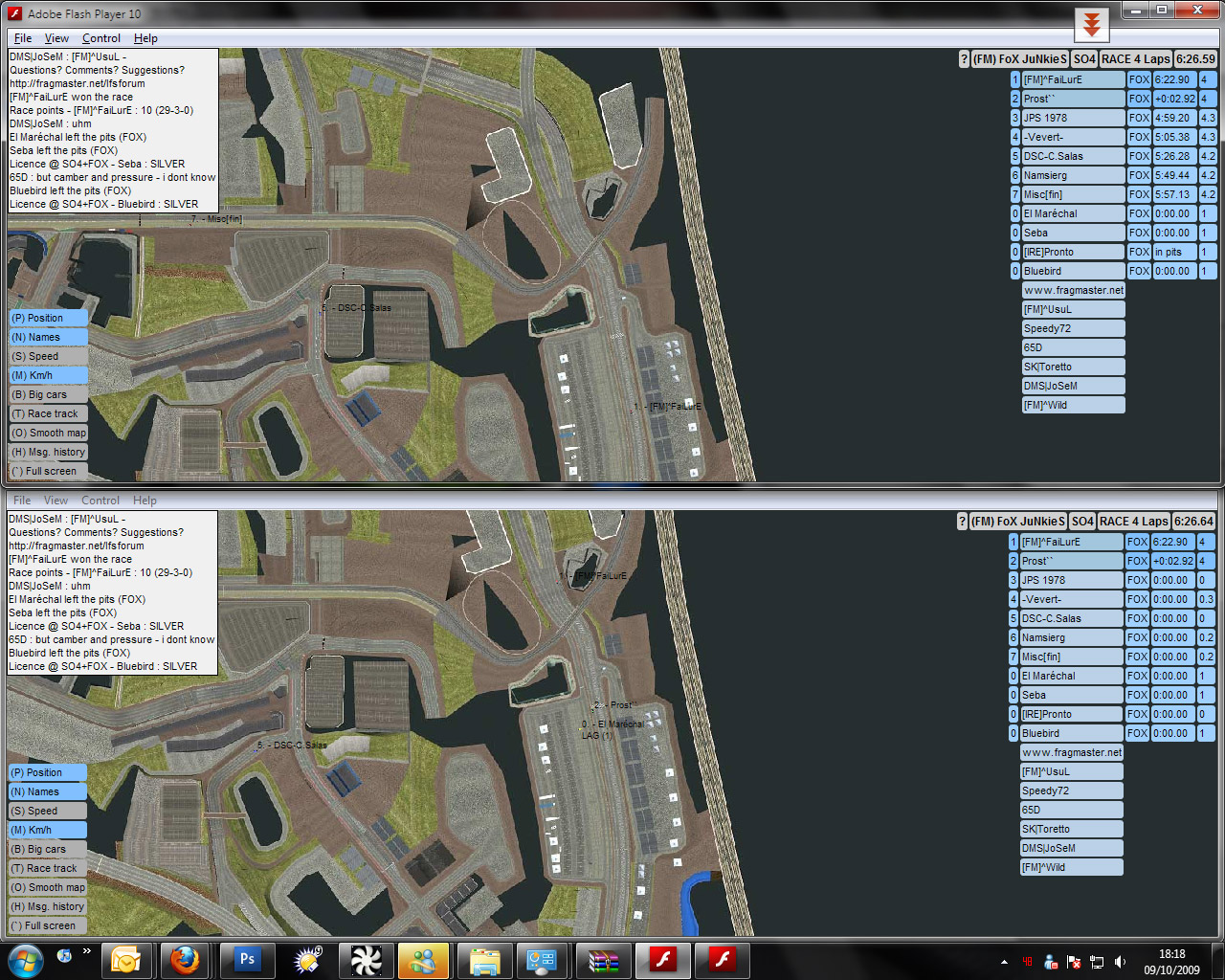 Conveniently the screenshot gives an idea what sort of delay is there, in pic2 the 2nd placed car crosses the line and is 2.9sec behind the leader, who was about half the distance between the 2 drivers short of the S/F line in pic1. So i'd say theres around 4.5sec lost in only 180sec of the app being open.