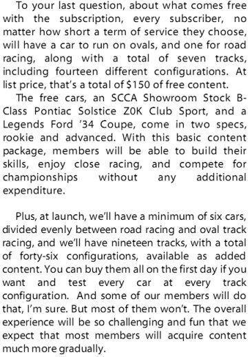 Looks that the initial product is nothing more than a "large demo". Basically XRG, LX4 and XRR for ovals. And few tracks of which half are ovals.