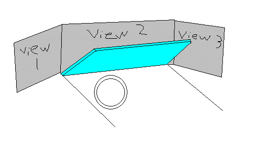 3) Finally, it would be ideal if there was ingame support for setting up these views correctly. See my amazing drawing created with ms paint. The 3 grey views are the displays, the blue is the windshield of my actual cockpit (not the game). I find it difficult with the current view controls to set the center view to say... just display what's visible through the windshield from the drivers perspective.