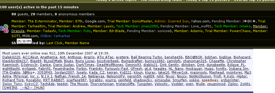 Right, this forum is a popular one. I've been here a while, and it seems that this forum is the most popular one I go to. Take Sonic Retro as an example. People only post every few hours, which really annoys me. Where as here, people post almost every second. See the attachments to see online who is online (Take out Member: The Exterminator for Retro and Dalek0220 here).