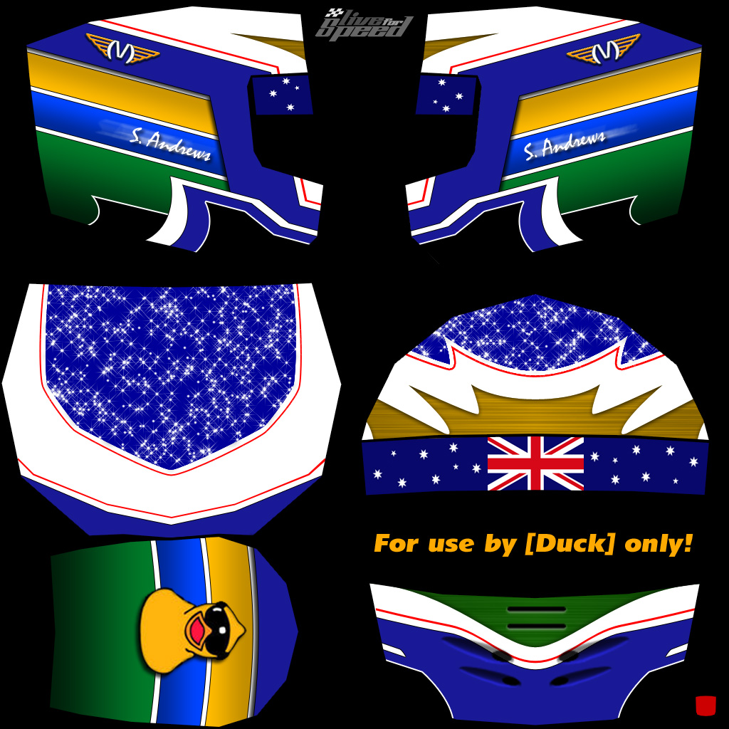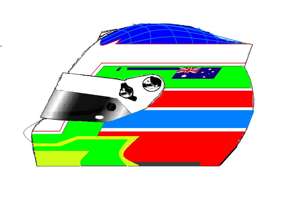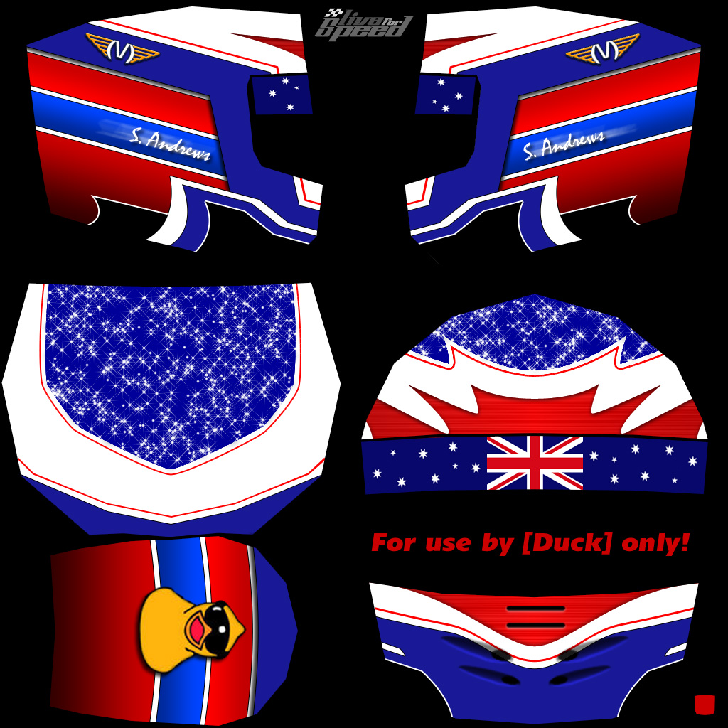 Not 1, but 2 helmets, based on that design, but tweaked a little bit and some creative license added in there. I didnt like the green & yellow with the red & blues, it felt a little too much with so many vivid colours, so i went with just red and blues and then incorporated a little more aussie flag into the design (colours & stars), and then just as i was finished, and hitting the SIX hour mark, i decided i'd tweak it a little more and did an Aussie themed helmet to match the Aussie style Mercury FOX skin, swapping the reds for yellow & green which i'd earlier removed.