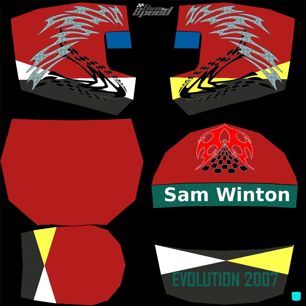 After recently doing a clean-up & update of my personal team helmet I thought I would post it here for ppl to have a look and comment. I started it all from scratch & it represents ~5-6hrs of work. The checkers are the best I could do without spending a stupid amount of time to get them perfect but it looks fine in-game as is anyway.