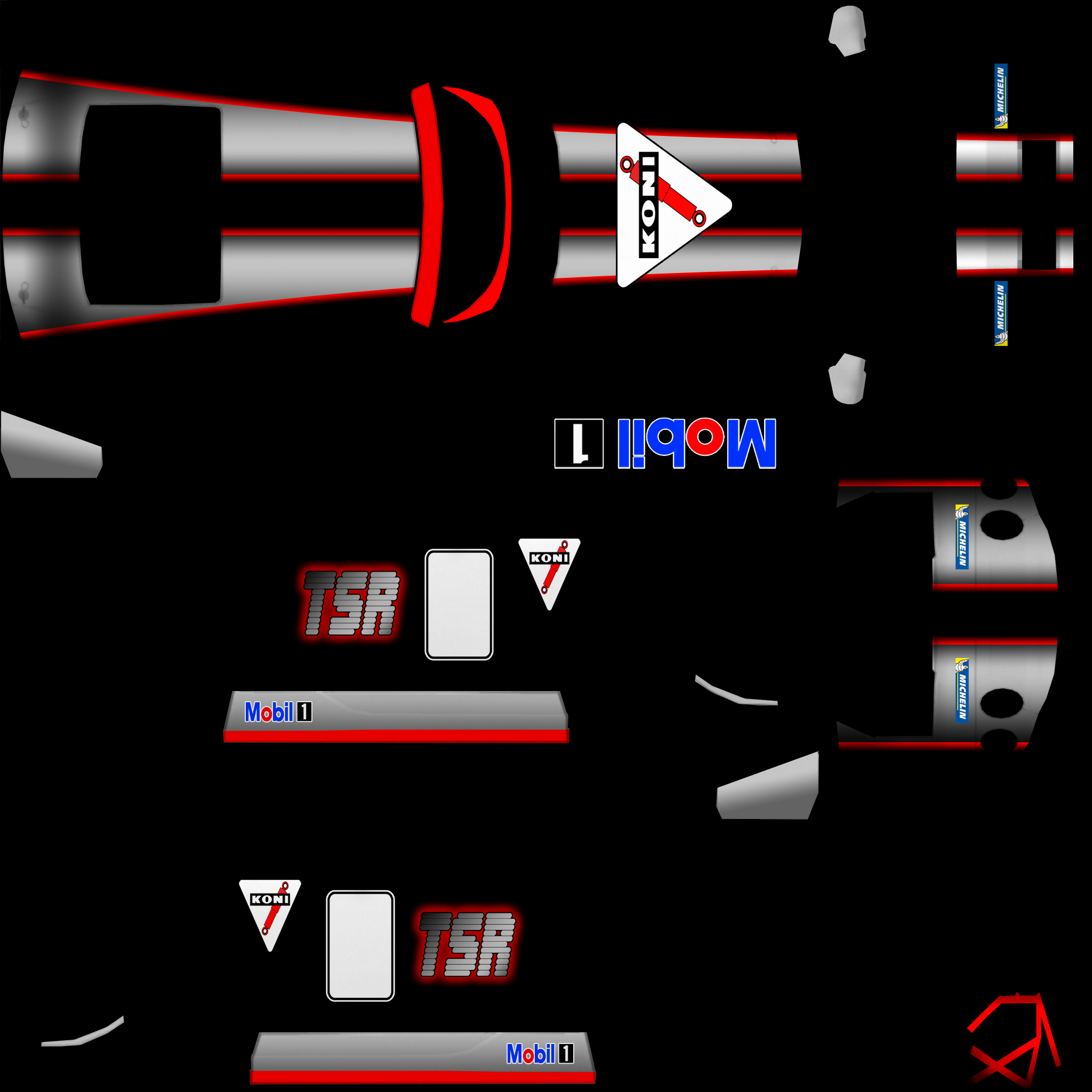 I would be really grateful if somebody could make me a skin for my FZR supercup team in oneGP. I would like if the colours were red grey(bright grey pls like silver) and black(majority black pls). I would like to have the sponsors as Michelin,Mobil 1, and Koni. I would appreciate if this was a private skin for my team. And it doesnt have to be that complicated, simple is good. And if it could be possible to have it done soon. thanks,