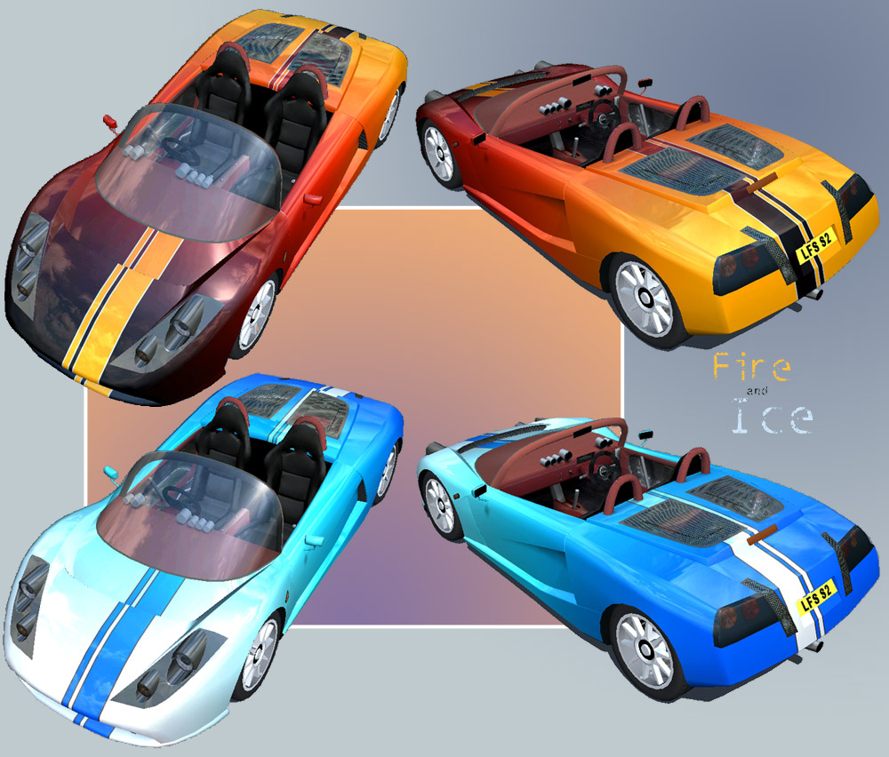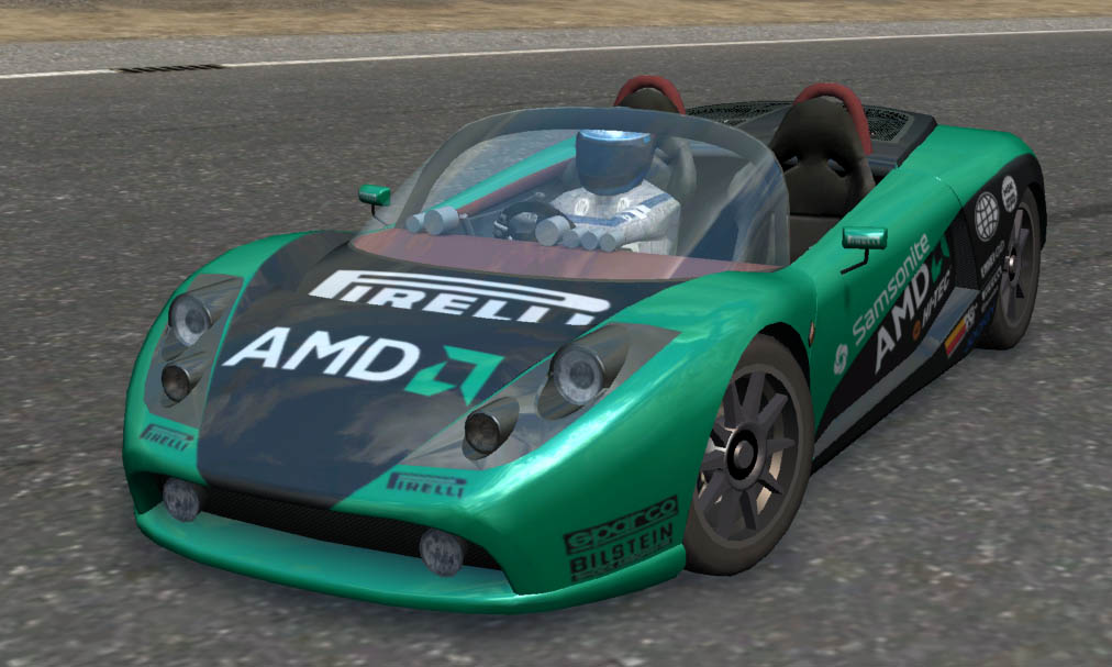 Continuing the theme with the skins I created for the FZ50/GTR, here's the Raceabout in AMD colours. Get the full (1024×1024) skin here, and it's also on LFS World so it can be seen by others. Screenshot attached.