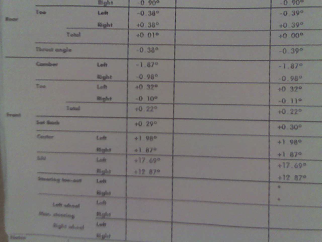 Actually that may be true. Probably that is why there is total under. But only for toe, camber doesn't fit. In that case rear looks fine, but front is still 0.22 degree error. Doesn't seem to be big difference tho. At least right tire will last longer .