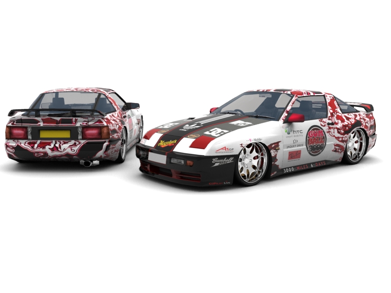 Went for a slightly unorthodox approach for how the car looks, at least at the rear, here's the high res (2048X2048) skin and preview. Based on Gumball 3000, decals are sponsors of the event.