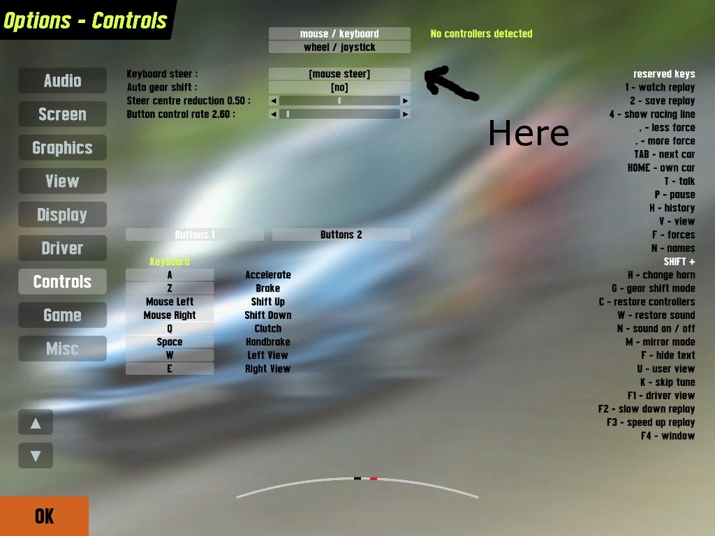 i changed the controls and i make the Brake Arrow Down and Accelerite Arrow UP, but how i can make the arrow right and left for the twists please? i cant play on mouse