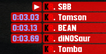 Dinosaur trying to overtake bean, but bean holds his place. Tomson going far away and SBB even more far away.