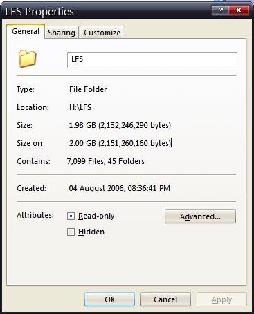 So now currently, the grand total of LFS is.... less size than what I had before, but many more files, though I didn't count the other computer this time. (19.14 Gb, 121,436 files, and 1989 folders.)