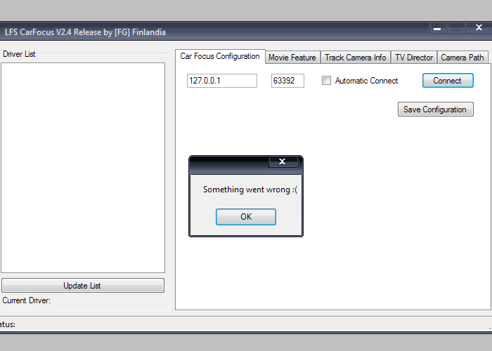 CarFocus has another application called CarFocus Broadcaster. You can control the LFS cameras via CarFocus Broadcaster.