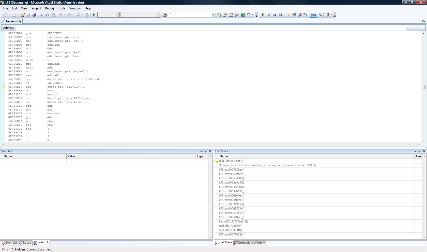 Unhandled exception at 0x6b785bf7 in LFS.exe: 0xC0000005: Access violation writing location 0x0000045c.