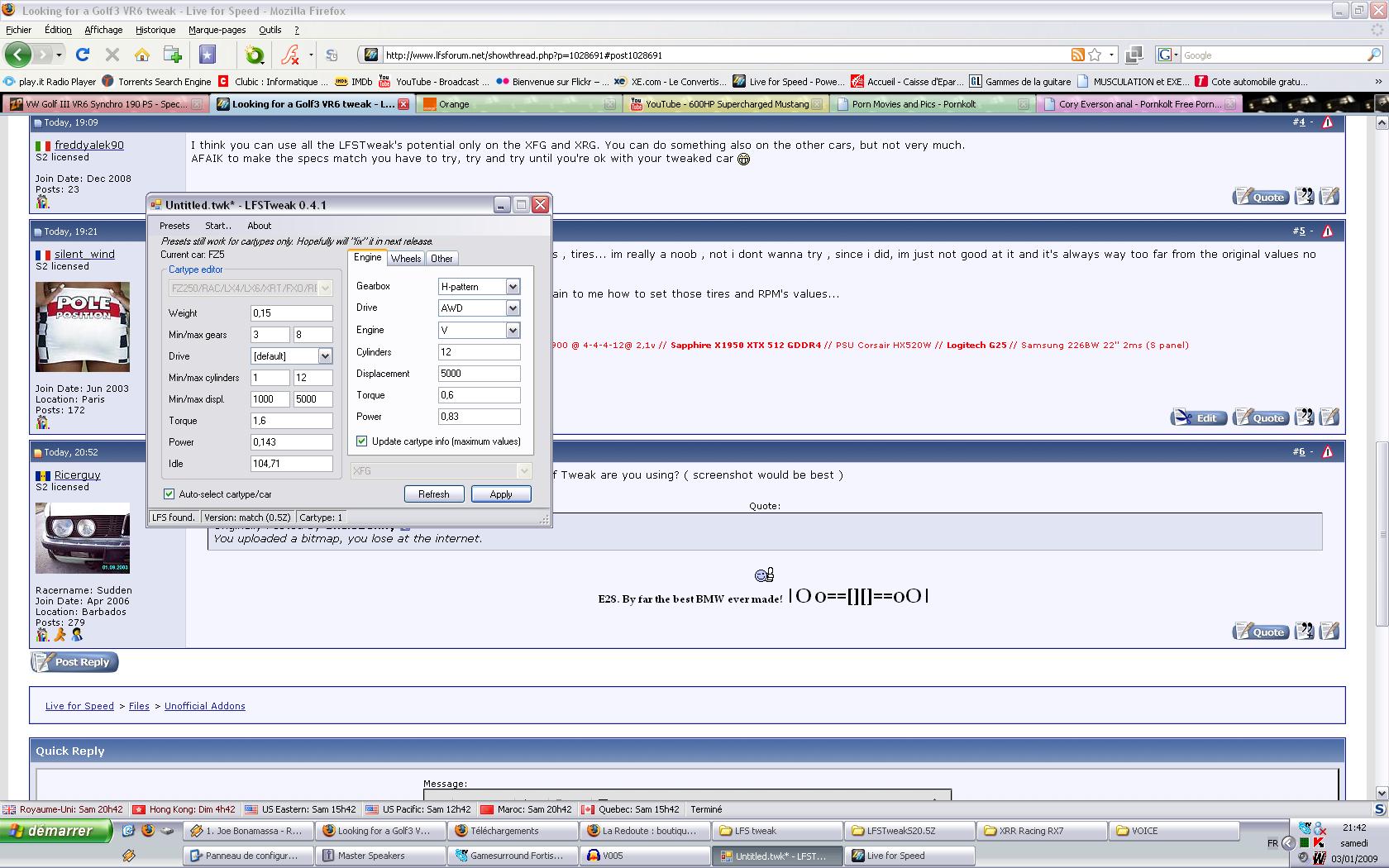 still i have some issues with lfs tweak, like i can't use the other cars .. anyway, if someone can tell me how exactly to make the specs match..