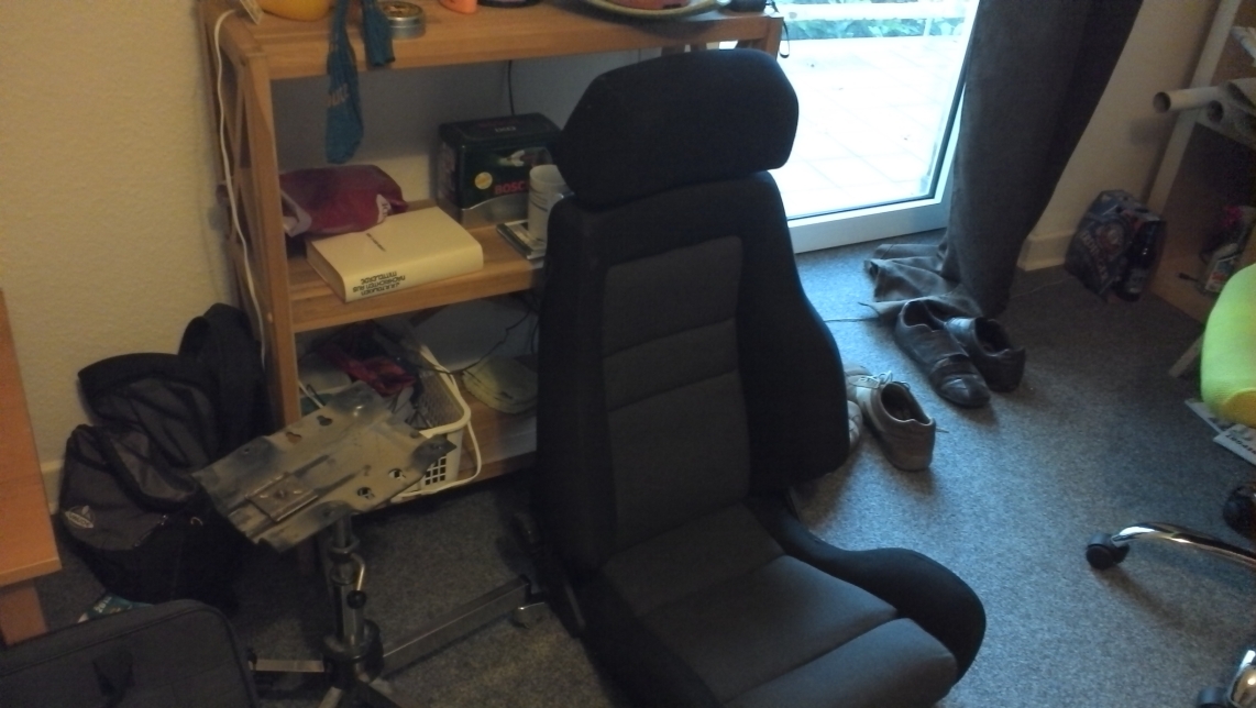doing this the DIY way as usual, got a used Recaro for cheap from a friend, in good condition apart from a cigarette burn. Adapter to fix it to the (very sturdy 30 year old) chair base on the left is being made atm.