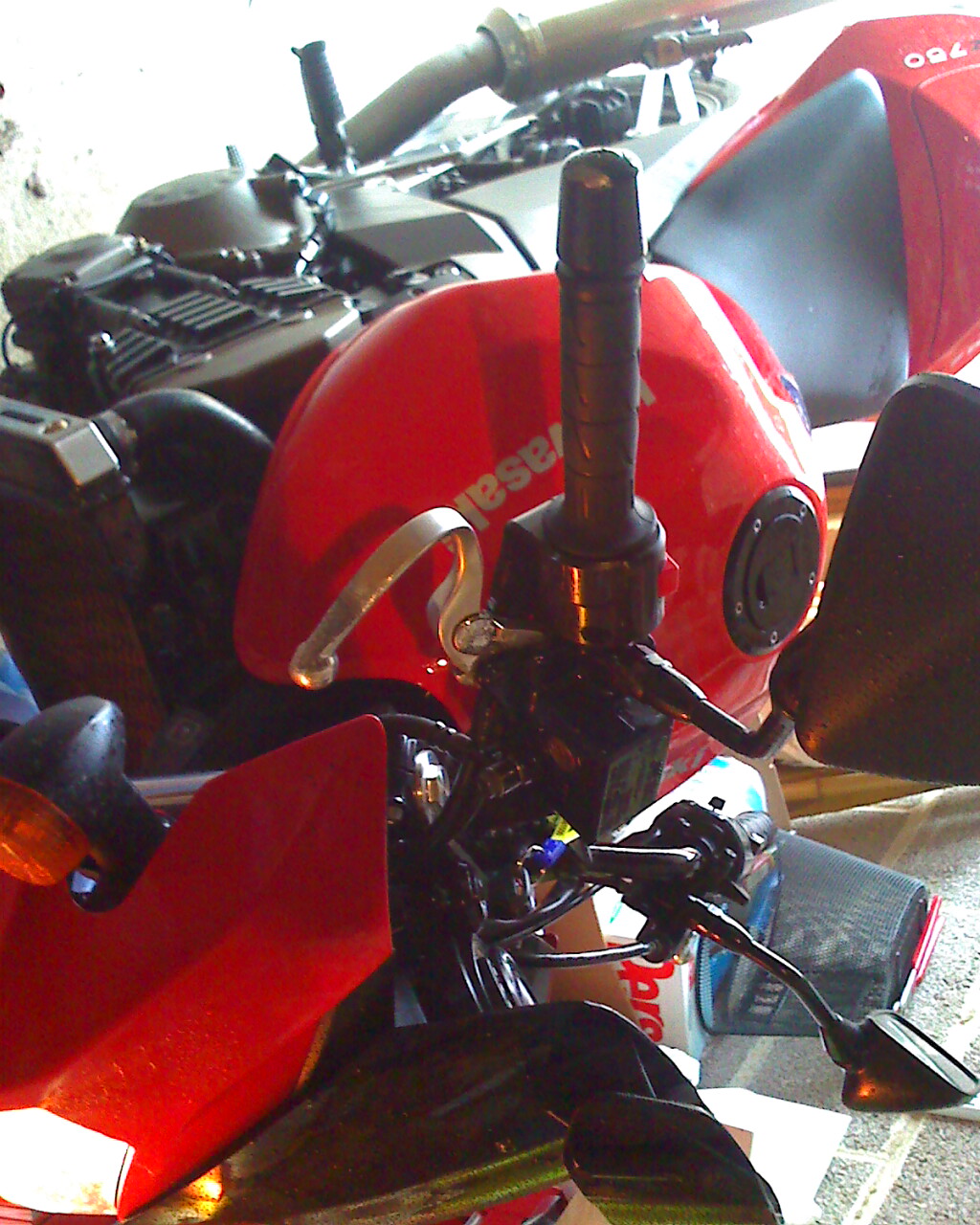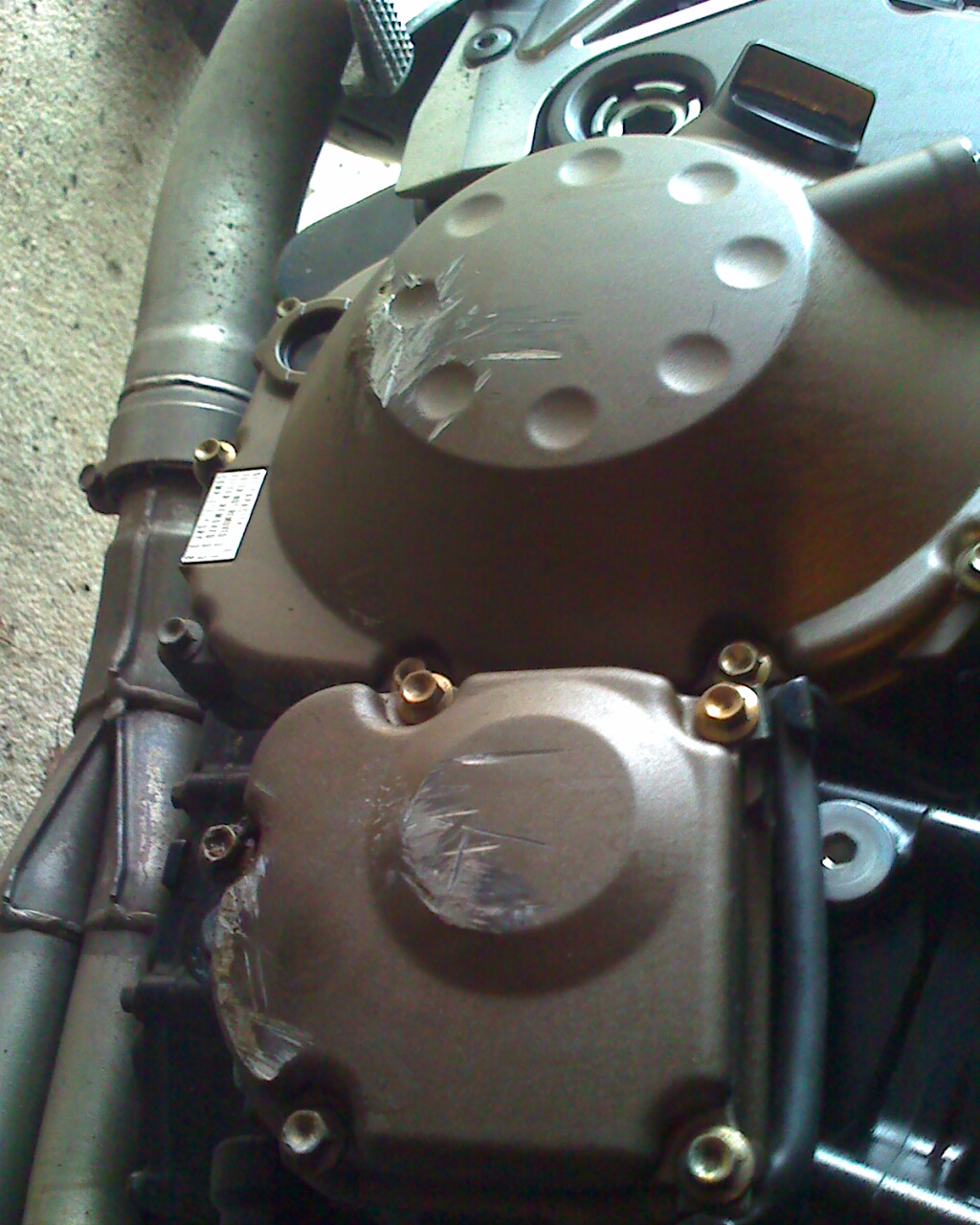 Pictures taken after I nursed it home. No mechanical damage. Just cosmetical. Not the point, really. Scratched/scuffed RHS bar end not overly visible.