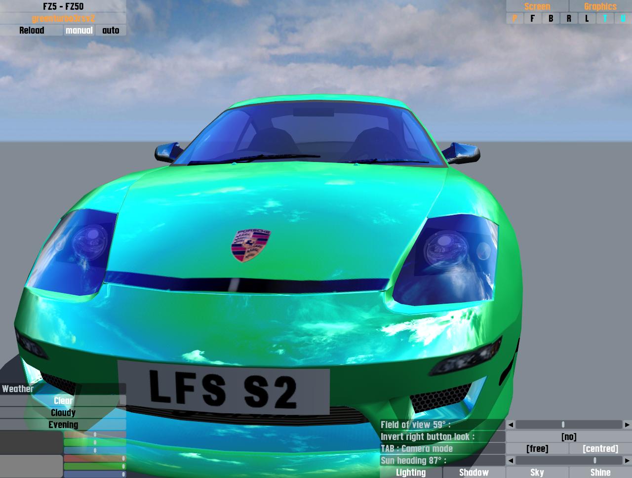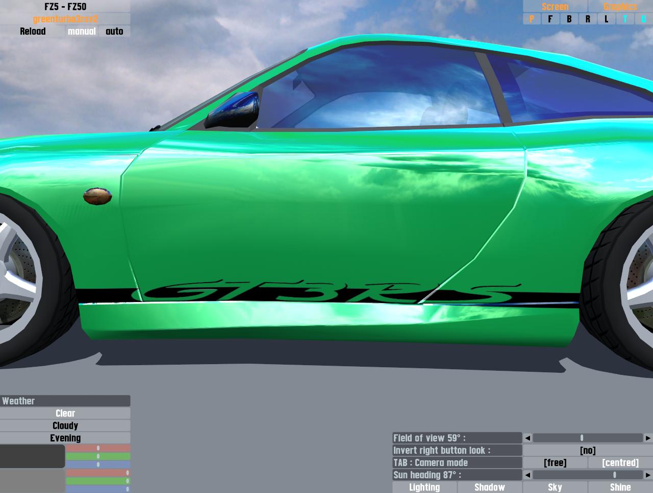 I have made a pack for FZ5 which makes it look and sound and feel like Porsche 911 GT3 RS. I have made the skin myself (took some parts from photos of the real one),I have made the sound myself (it may not sound like GT3 RS but hey,I tried!), I have made the front lights (took them from a photo) and I have made the setup myself (it has gear ratios from real GT3 RS)
