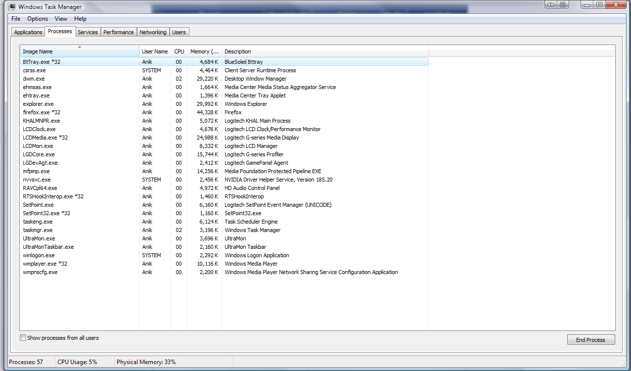 well the situation is that I bought a g25 on Thursday and it was fine on day one and on day 2 and 3 lfs loses calibration of the wheel. I replug it back in and works fine for only some time. Keep in mind that the center is ok on the game controller window thing. Is there any solution to this problem? screenie of task manager before i run lfs (turned off sidebar also) also to add this only happens about 2-4 degree left or right after a quick jerk to correct my steering while i enter a corner.