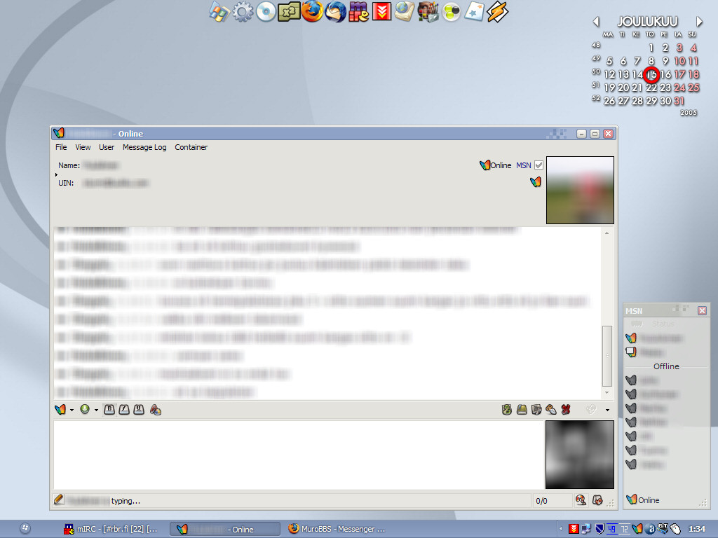 Ah man that MSN Messenger looks horrible (in Stellio's pic), with all the ads and other crap... This is the way I like it (Miranda IM client, with this config it's maybe a bit too simple) Attached images