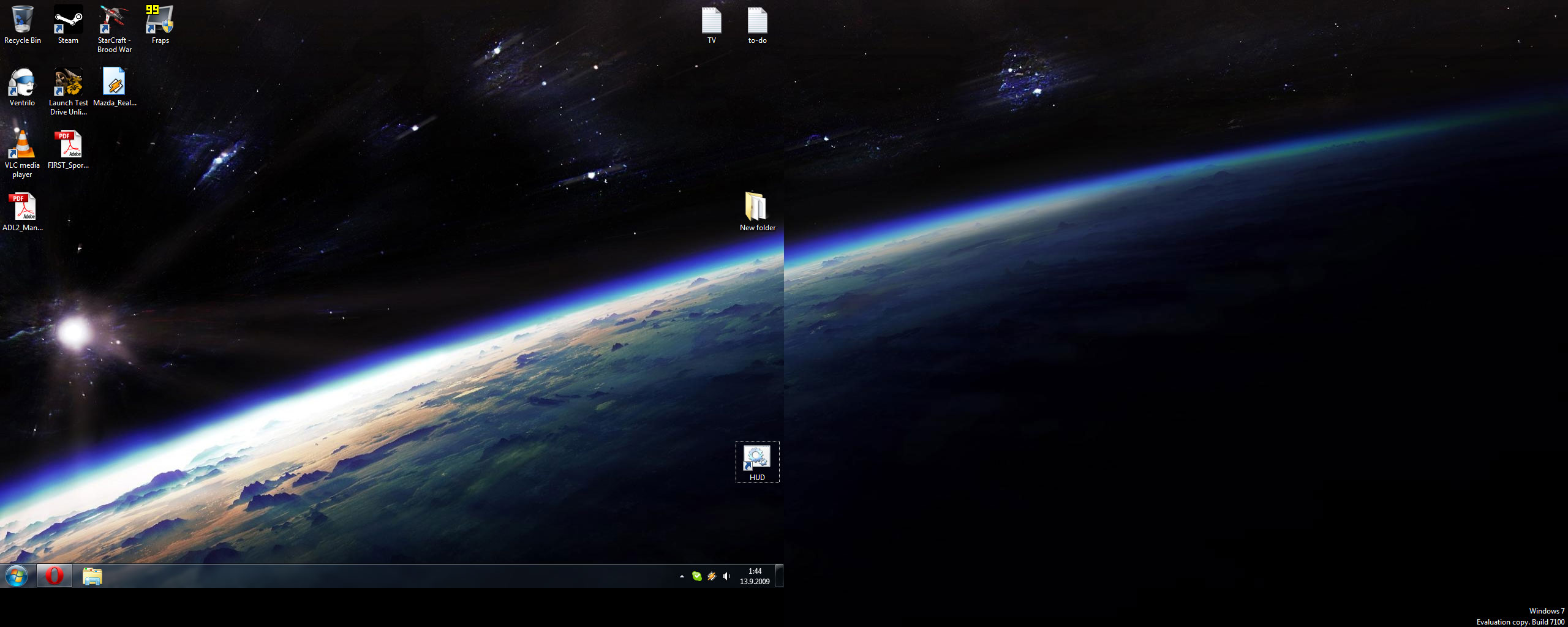 Not much going on, desktop is becoming a just a temporary storage space since I've switched to using search function instead of shortcut icons. Cut in the middle is visible because main screen is on lower horizontal resolution to keep aspect ratio correct.
