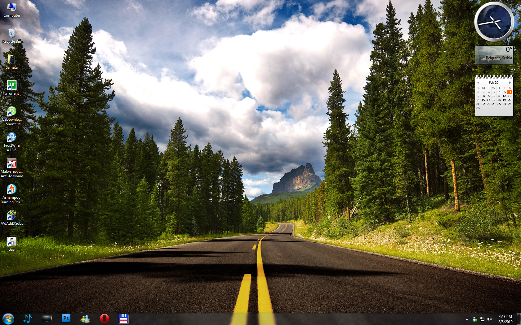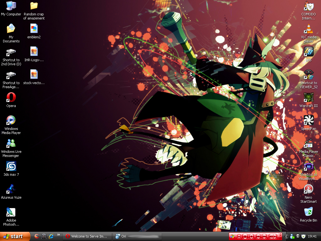 Heres is my desktop - im sorry its so oversized but i really like large and simple my background took me hours and hours some time back Attached images