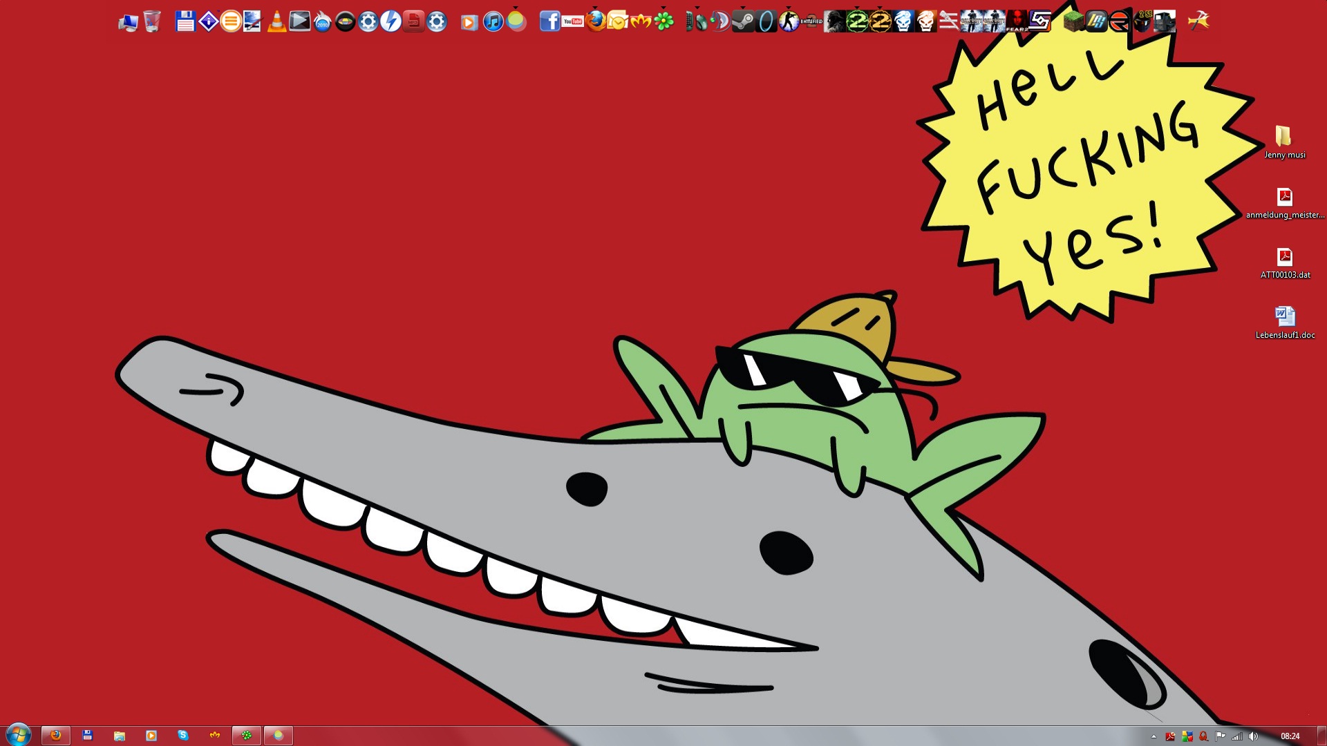 Quote from Bose321 :And instead you fill your taskbar with crap? At least if you fill up your taskbar you're not ruining a nice picture But yes, I could probably get away with a few less shortcuts there