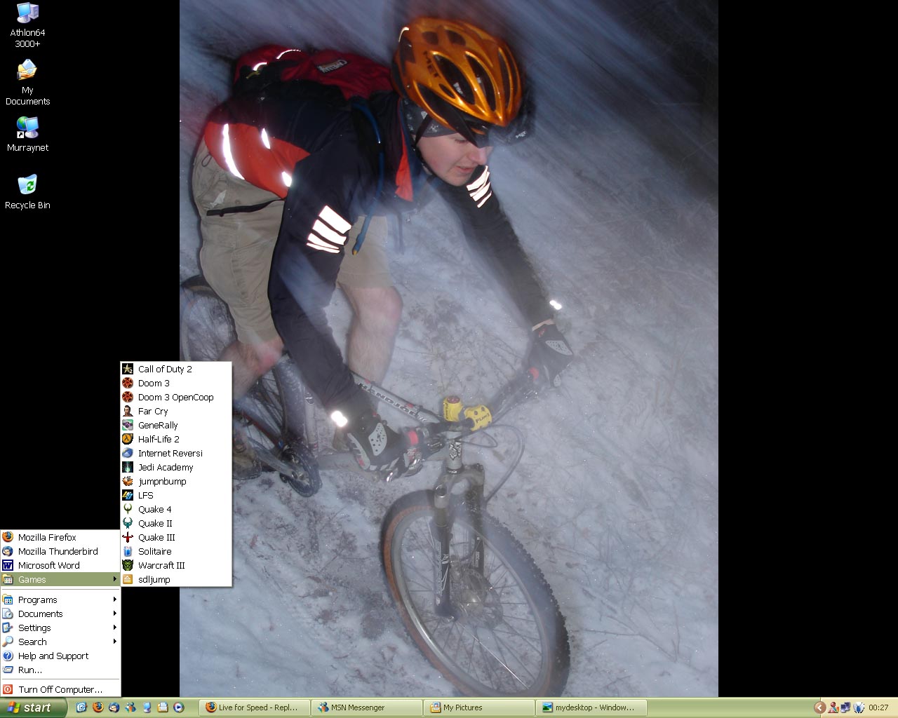 I always go for the minimalist destop, with a games menu for LFS, COD2, Farcry etc etc directly after clicking the start menu for quick access