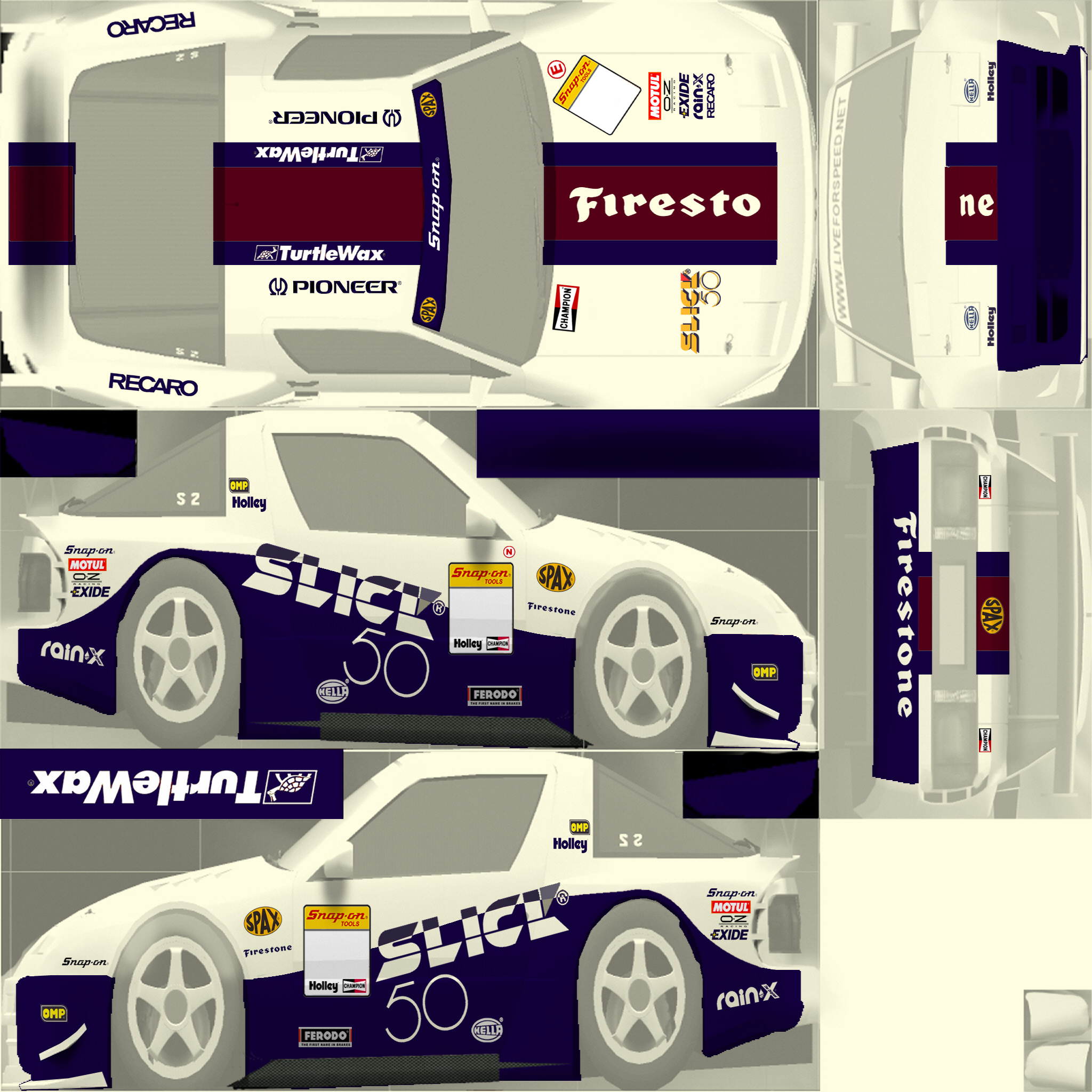 XRR skin based on the livery of an early-90's Honda Prelude from the British Thundersaloons series. This was one of the first racing cars I loved (the noise this thing made! and nothing could beat it at the time. It's still racing in the Classic Thunder championship with a different (awful) livery, because the original Thundersaloons series doesn't exist any more