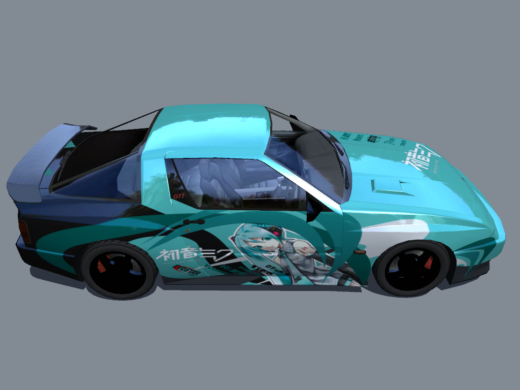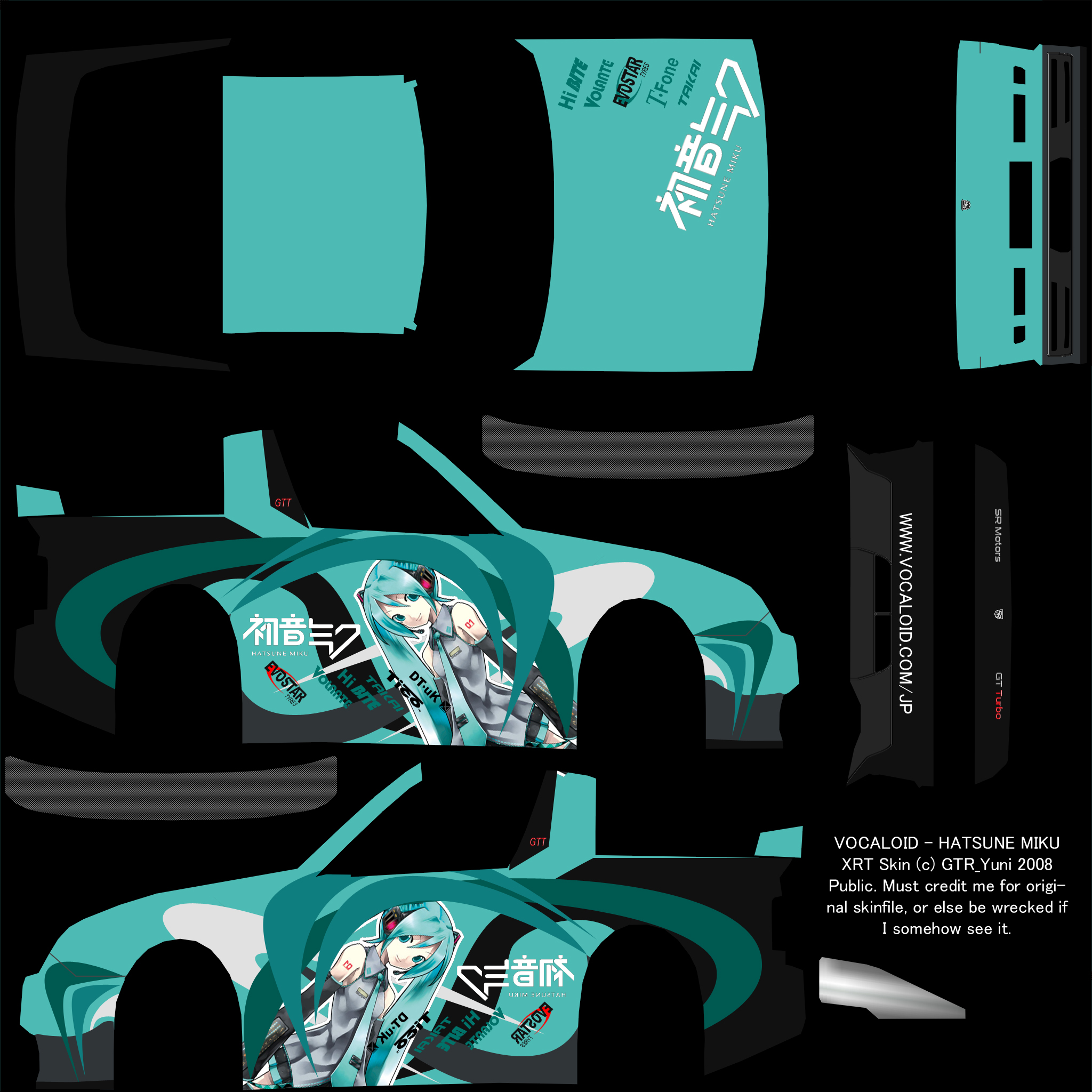 Vocaloid Hatsune Miku XRT "drift" skin. My first attempt at a serious drift skin and at a XRT bodykit. It's no ectype but I wanted something quite subtle. Critics please (other than take the "anime girl" off)