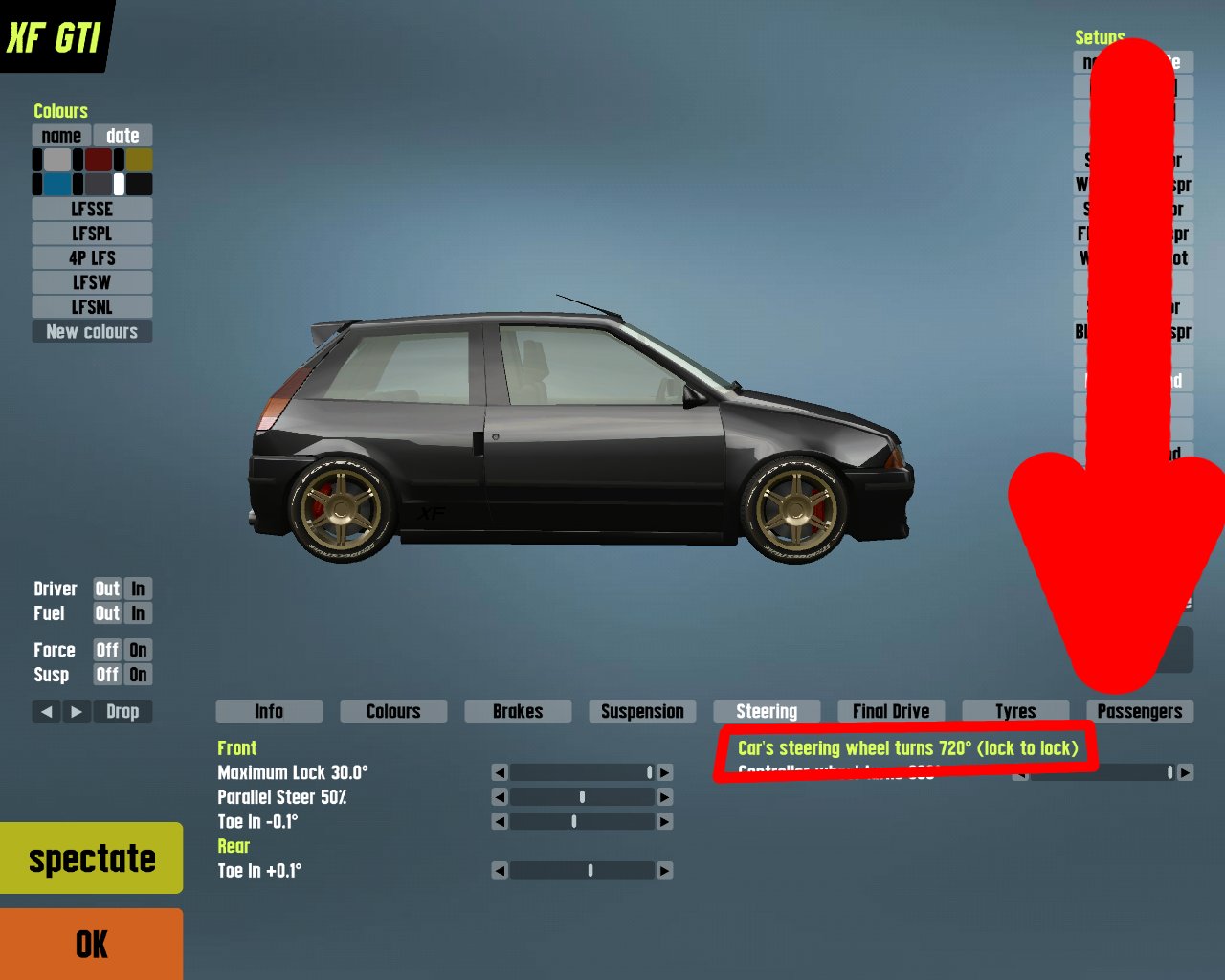 i jump in the Fz50 and just like a road car i expect it to have (lets just use 900) full degree steering, but then if i jump in the MRT5 i would expect lfs to change this for me to 90deg or what ever and this shouldnt be made changeable..