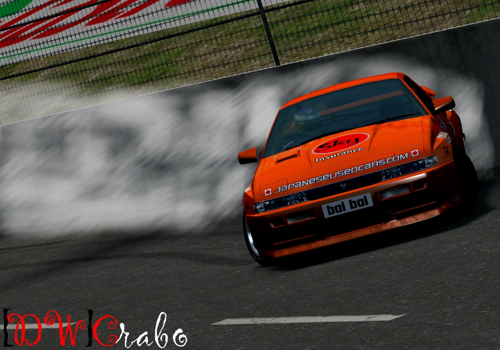 I have been working on this pic (for the autocross photomode competition) and tried a little bit of smoke. So far, it looks alright, but I can't get it to look like it is drifting. What is did was put a little bit of airpaint (I think that is what it's called) and then used the smudge feature to spread it. Any suggestions on how to make it better?