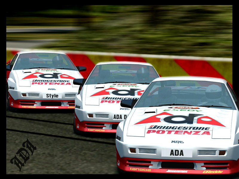 I wanted to get close shots of my two newest paintjobs, so I sent the AI out in them. Unfortunately they couldn't stay close for long, so got some screen caps from static cameras over a few laps and stitched em.