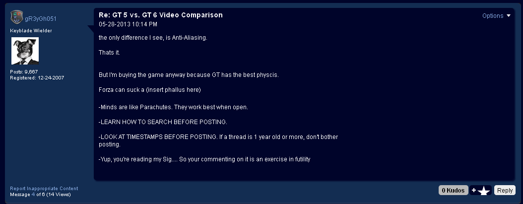 Again some totally not scientific "test" that will be analysed to bits on GT planet because Kaz said so and must clearly be the sign that GT6 has physics so advanced it will blow the competition out of the window for the next decade. (as promised everytime)