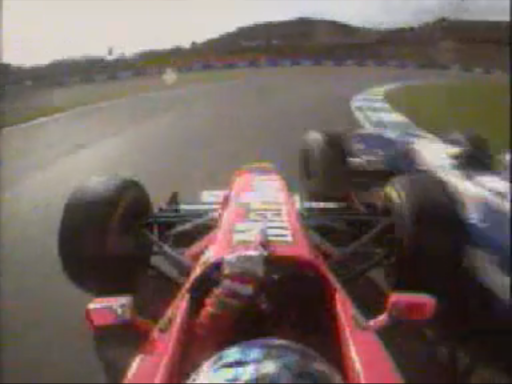 The difference is that at no moment Senna is ahead of Prost while Villeneuve was clearly half a car ahead and had already passed him on the inside when Herr Arschloch tried to wreck him.