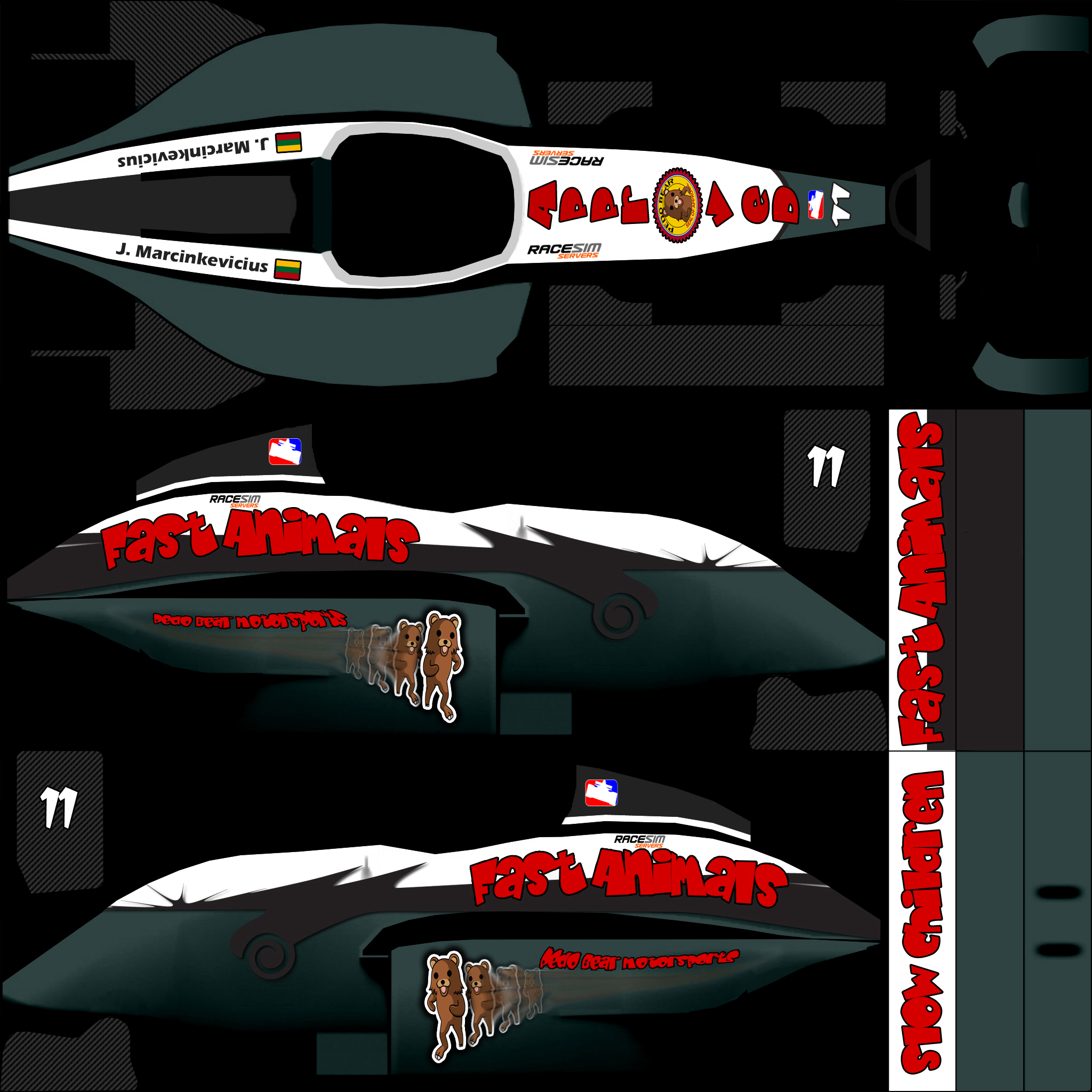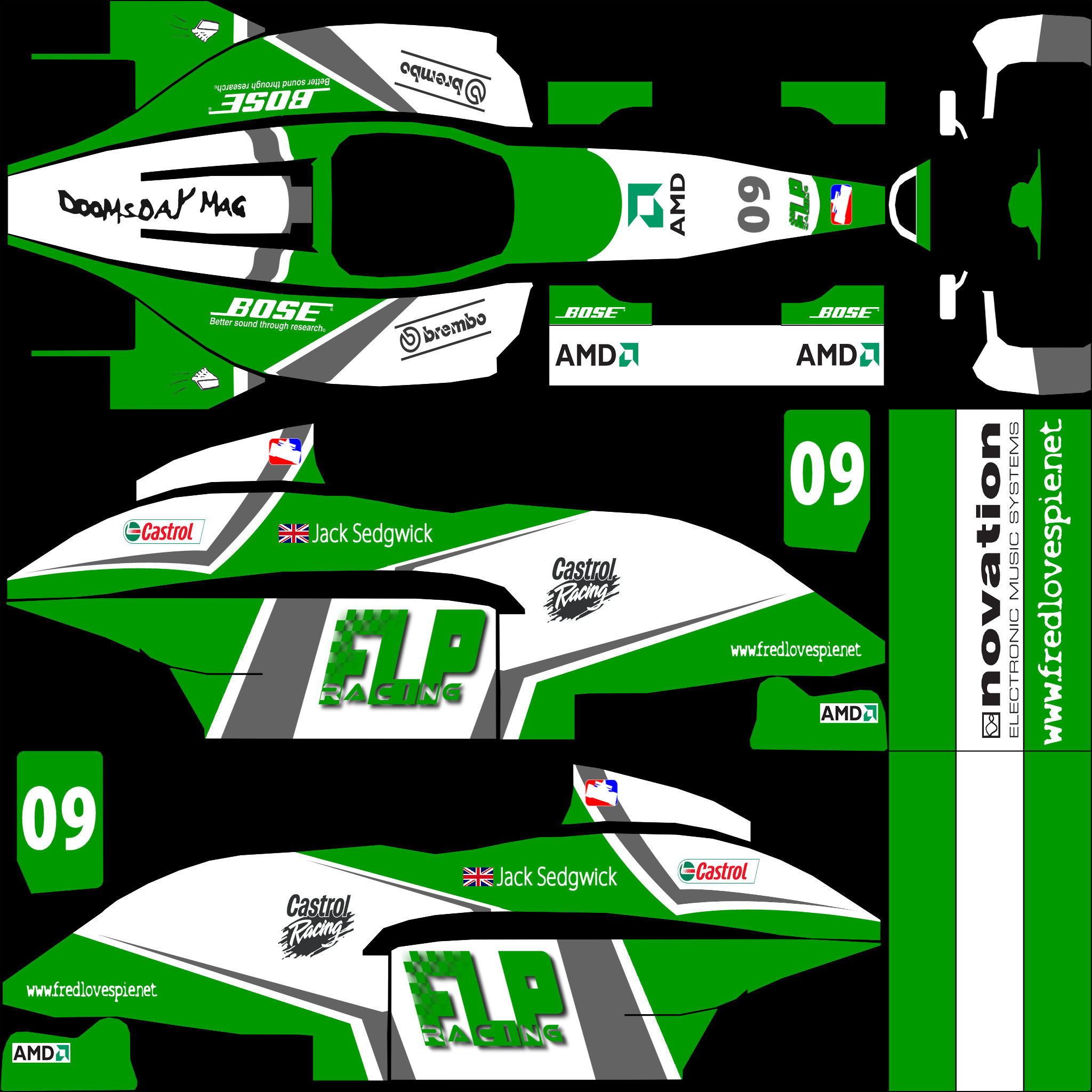 3.The livery must contain the car number on the nose and on the rear wing side plates. The driver's name and his national flag must be put onto the sides of the driver cells.