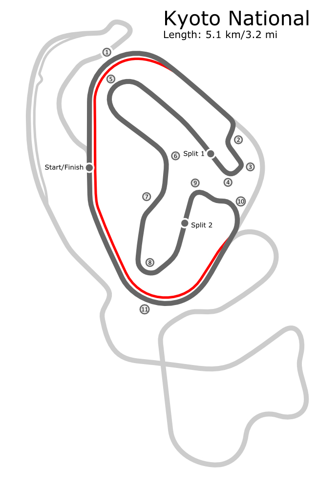 The SC will travel at approximately 130 km/h (~80 mph) throughout the course, only slowing for natural slow points. The SC will be an FZ5 for this round. Drivers should remember SC distance regulations: The leader must remain around 8 to 10 car lengths off the SC, and drivers must leave about 3 to 5 car lengths between their car and the car ahead. Incidents due to following too close may be deemed to be caused by neglect, and a harsher penalty issued.