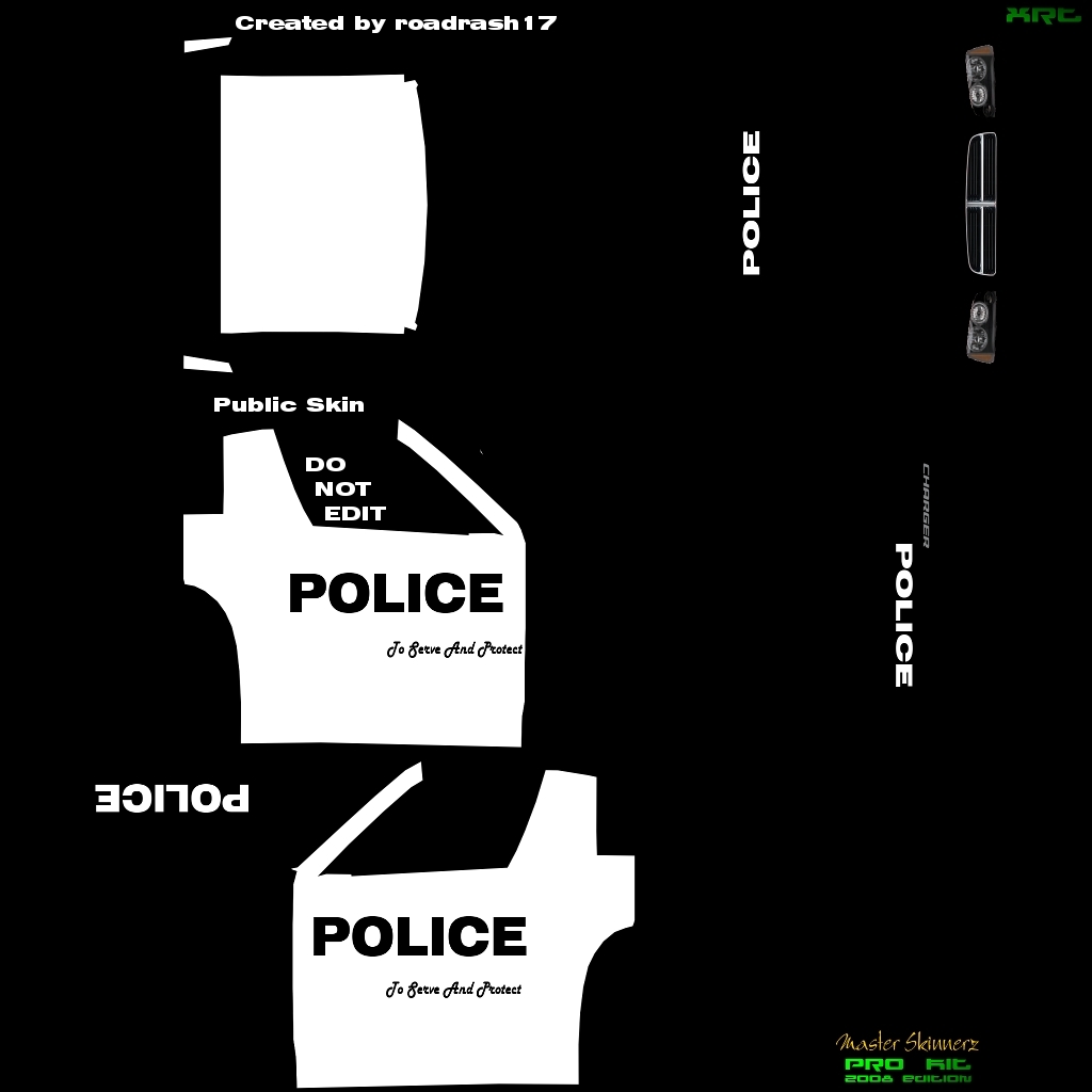 I figured I would start a thread where people can post cop skins that they make (or find, just give credit) so that others can use them. My first skin is modeled after the 2006-2009 Dodge Charger Police cars. It is a public skin, just do not edit.