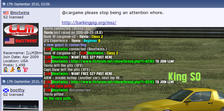 Quote from cargame.nl :Attention whore? Can you please take a look at your own behavior first, thank you! that isnt me... note the Bmxtwins. to Kitteh, i do not give free S2