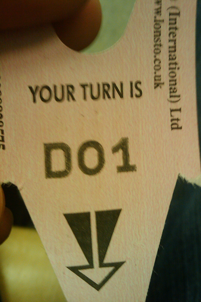Went to the hospital earlier today with my mum, we took a ticket and sat down, then when i went to see what number we were i was quite insulted by what it said on the ticket!!